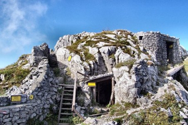 Alle trincee, gallerie, baracche della Prima Guerra Mondiale si aggiungono resti di un passato più antico dove incisioni, strade ci riportano all' epoca dei Romani.
